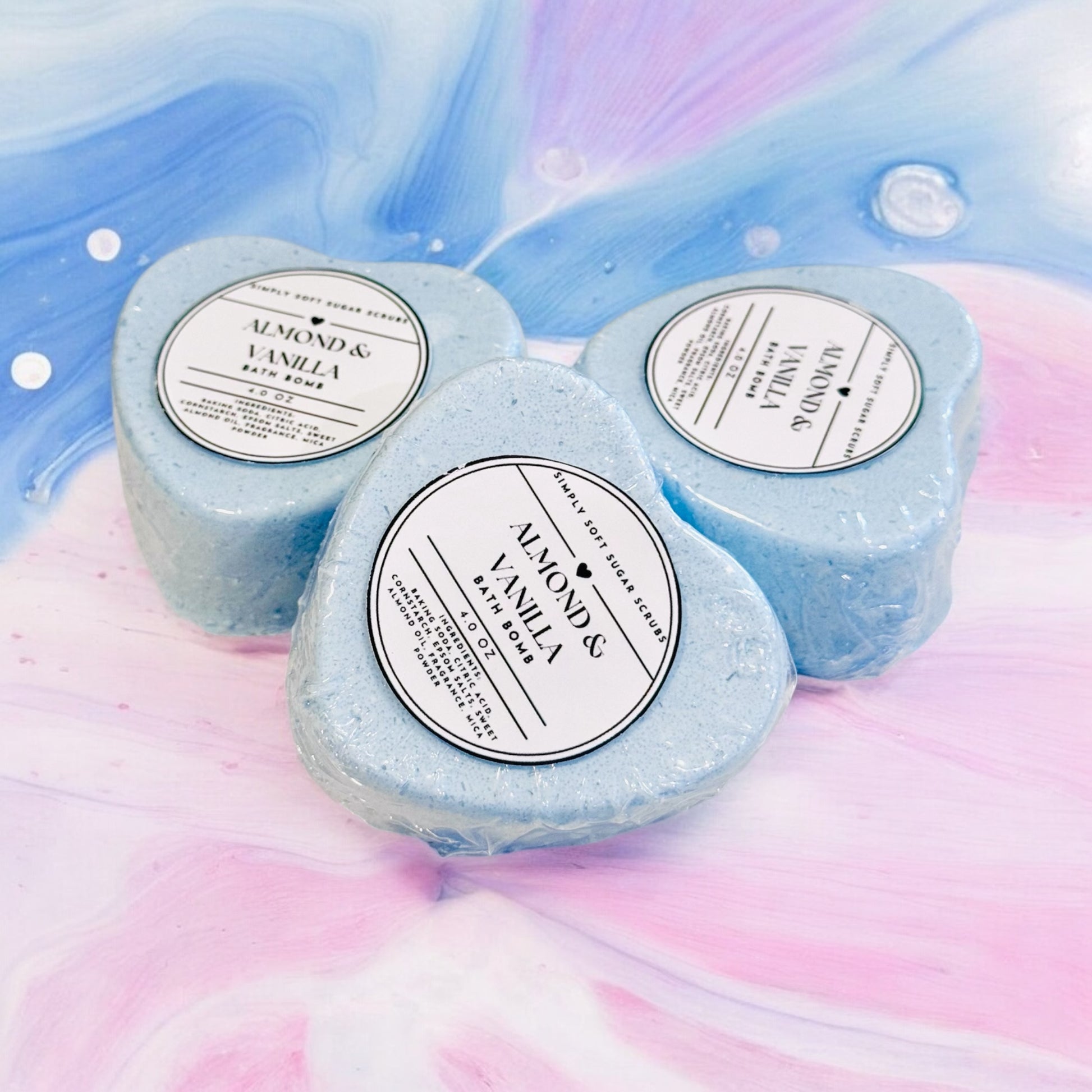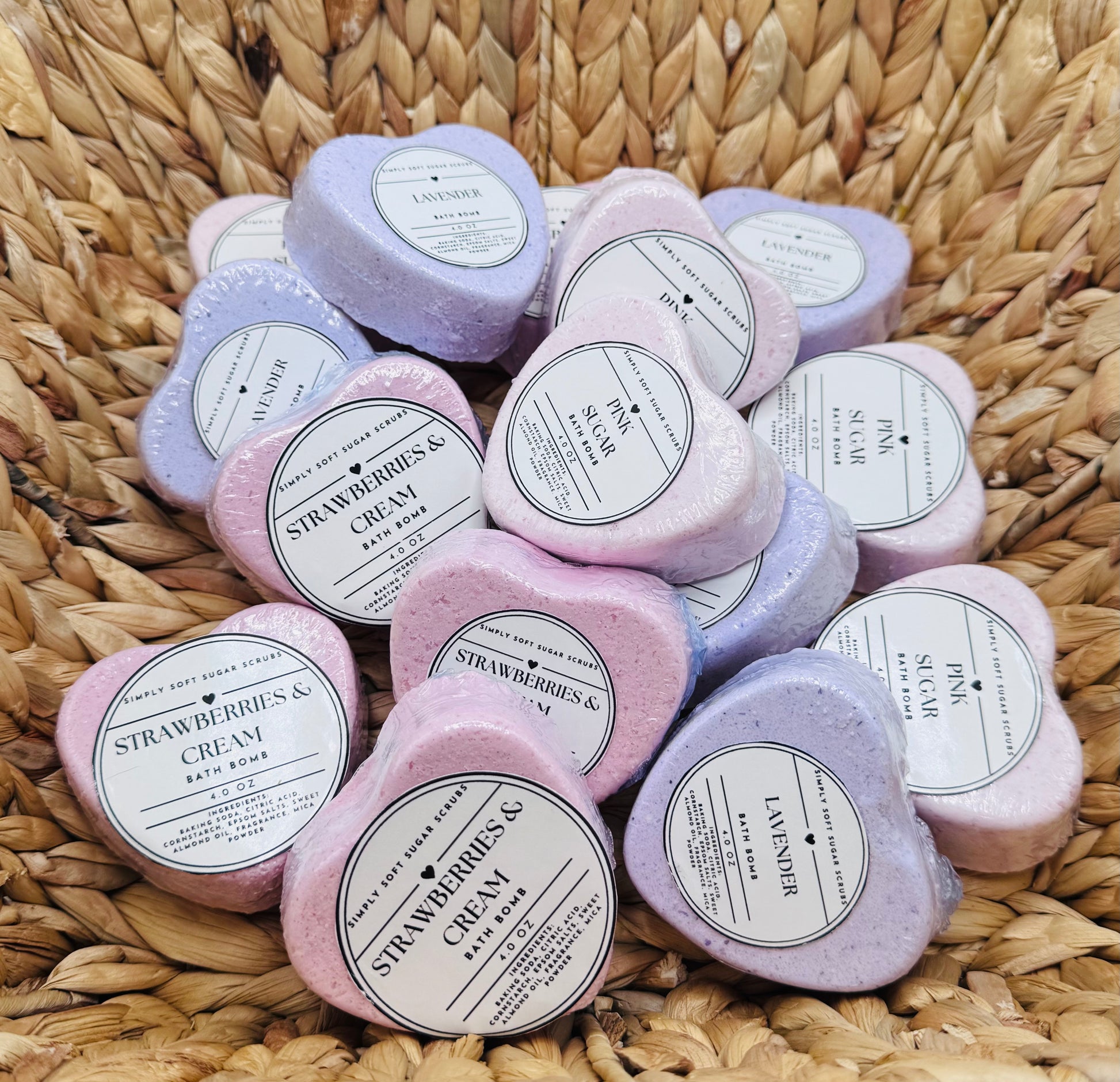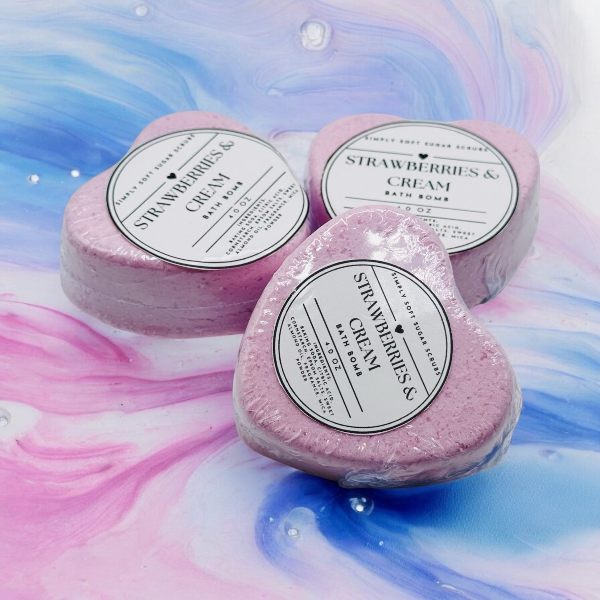 Indulge in a luxurious bath experience with our heart-shaped bath bombs, crafted with all-natural ingredients for a gentle touch on your skin. Each bomb is infused with enchanting scents like Strawberries & Cream, Pink Sugar, and Lavender to transform your soak into a blissful escape. As the bath bomb dissolves, enjoy a delightful surprise hidden at its core, making every bath extra special. Perfect for self-care or gifting!