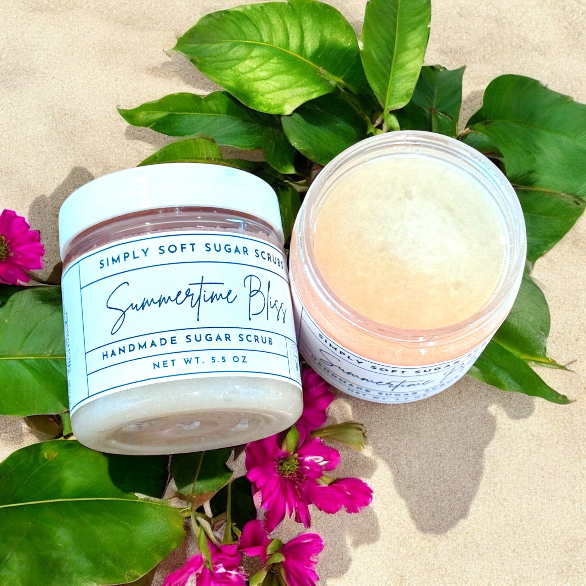 Step into sunshine with Summertime Bliss, a bright and breezy sugar scrub that captures the joy of warm days and fresh blooms. This scrub is bursting with citrusy top notes of sweet orange and lemon zest, blended beautifully with soft floral undertones of jasmine and neroli. It’s like a barefoot stroll through a blooming citrus grove.